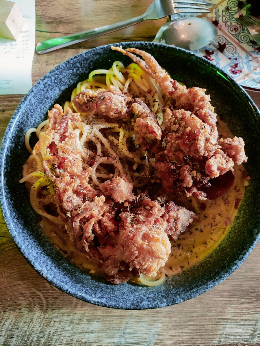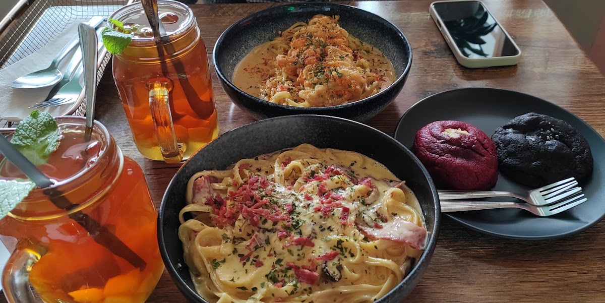 The menu leans heavily on pastas and comforting mains, with standout dishes like the salted egg pasta, prawn aglio olio, and buttermilk chicken waffle reflecting a local palate fond of familiar flavors with a twist. Diners have appreciated the generous portions and the food consistently arriving hot from the kitchen, which suits those dropping by for a reliable lunch or light dinner. Alongside the mains, desserts such as the French sea salt brownie or the red velvet cake provide a sweet finish without overpowering the casual vibe.